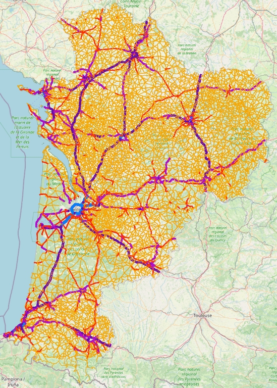 Ce jeu de données contient les trafics du réseau autoroutier concédé, du réseau national et du réseau départemental en Nouvelle-Aquitaine pour l'année 2023.
